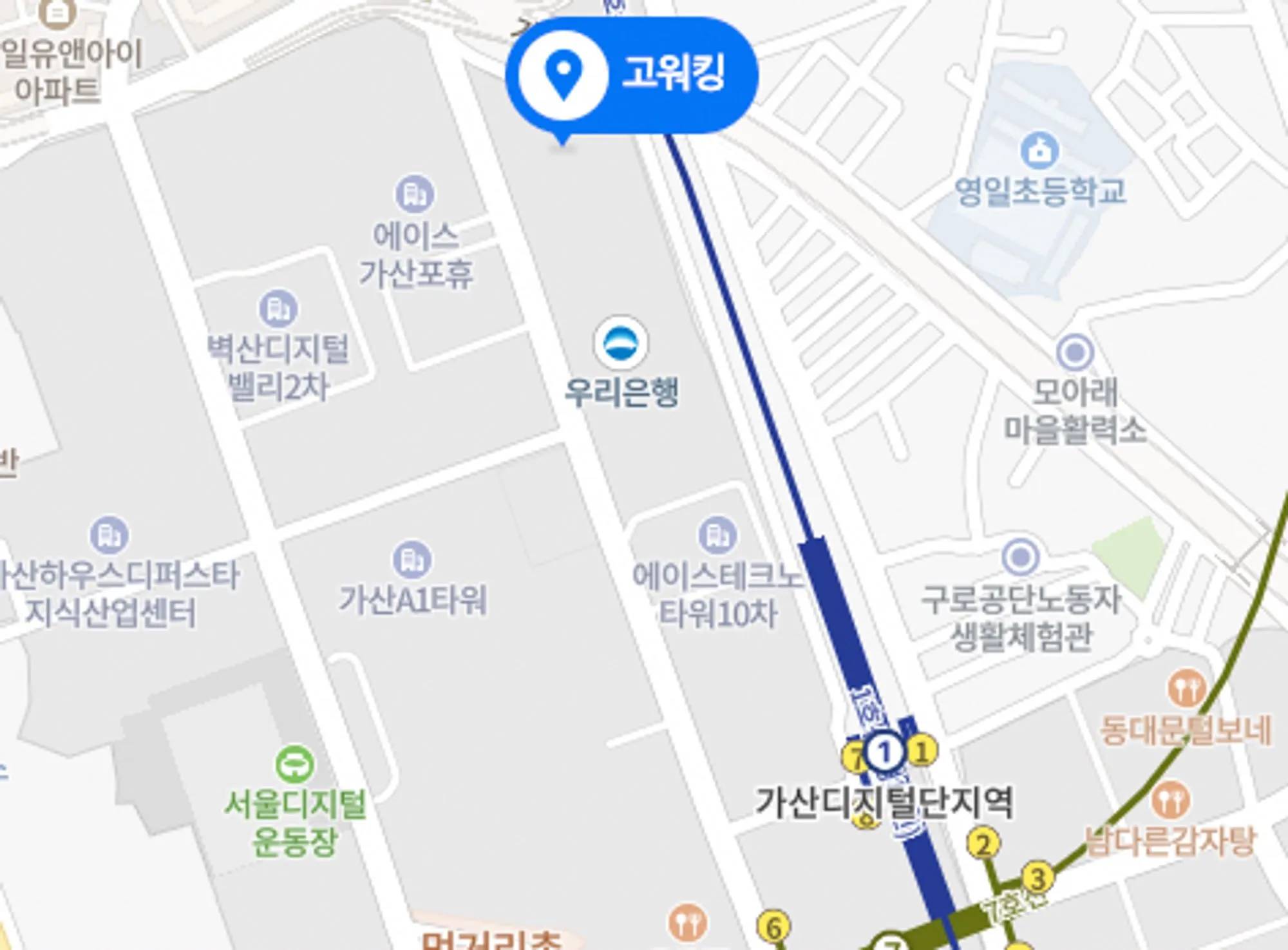 *가산디지털단지역 6번출구 나와서 5분(500m)직진 하시면 오른편에 에이스하이엔드타워5차 7층 701호입니다.