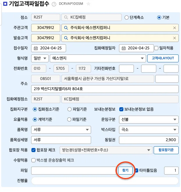 [예약] - [기업고객 파일접수] - [파일 찾기] - [패스트비상주에서 다운받은 엑셀 파일 첨부]